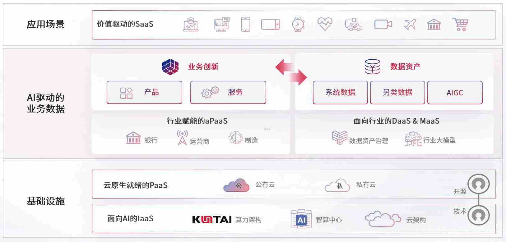 数字时代,,围绕企业数字化转型的关键要素,,,,德州竞技联盟数码开创性的提出数云融合战略和技术体系框架,,着力在云原生、、数字原生、、、、AI原生和信创产业上架构产品和服务能力,,,,为处在不同数字化转型阶段的快消零售、、、汽车、、、金融、、医疗、、、、政企、、、教育、、、、运营商等行业客户提供泛在的敏捷IT能力和融合的数据驱动能力,,,,构建跨界融合创新的数字业务场景和新业务模式,,助力企业级客户建立面向未来的核心能力和竞争优势,,,全面推动社会的数字化、、智能化转型升级。。。。